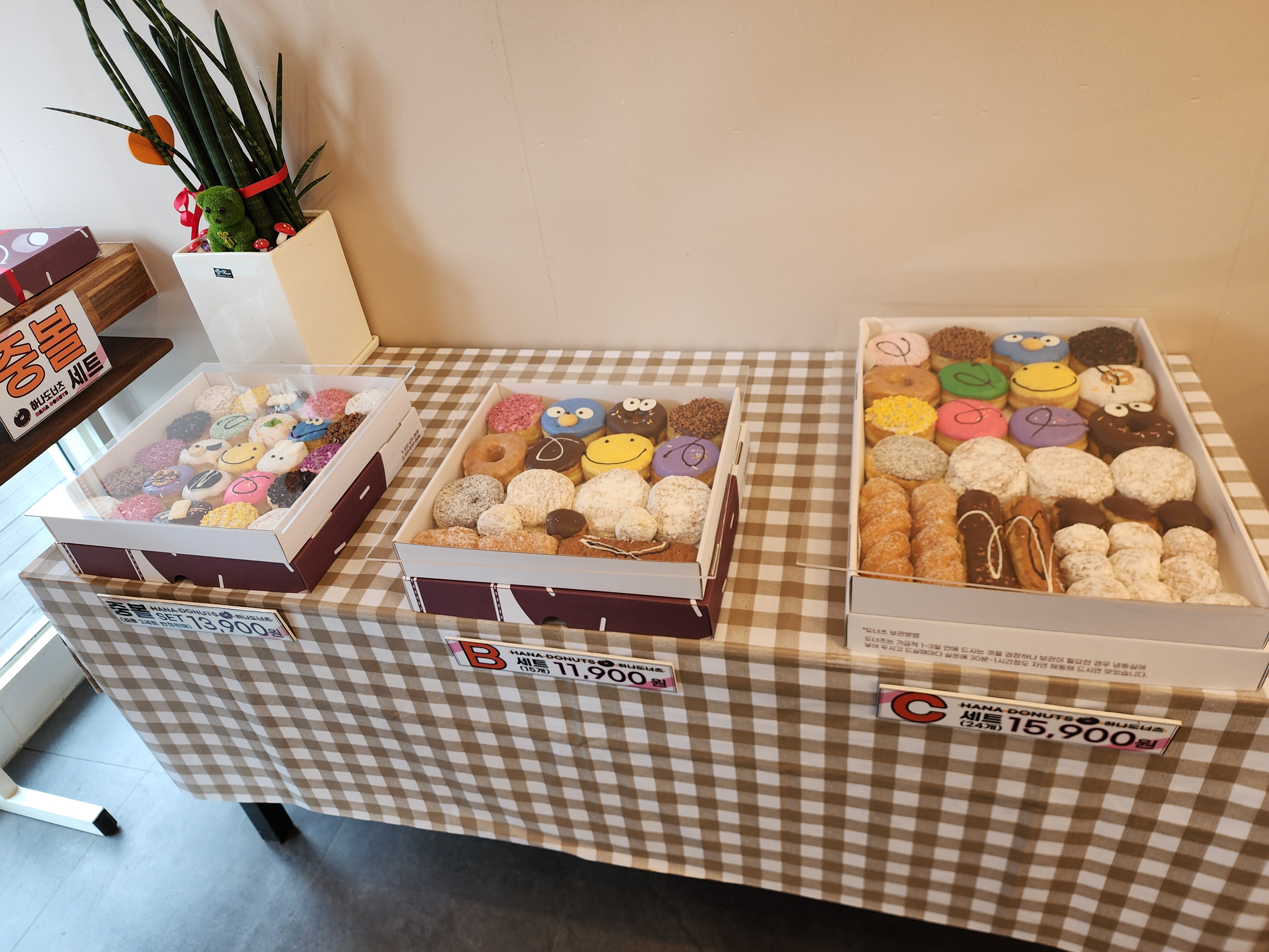 B세트를 살까 했는데 저희 집에는 필즈 도넛 위주로 좋아하는 사람이 있어서 직접 골라 담았습니다