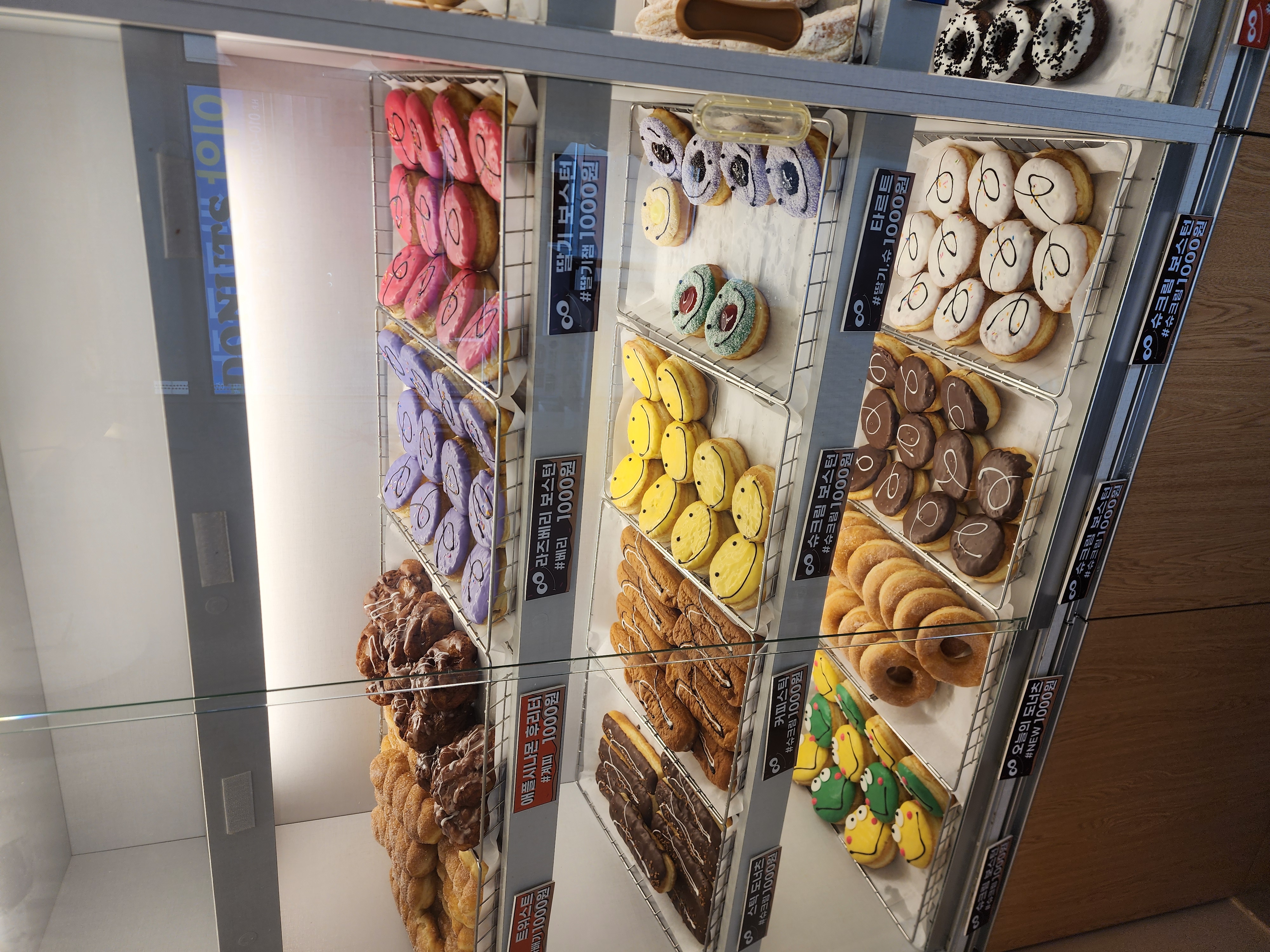 도넛은 쇼케이스 3개에 가득 들어있었어요.