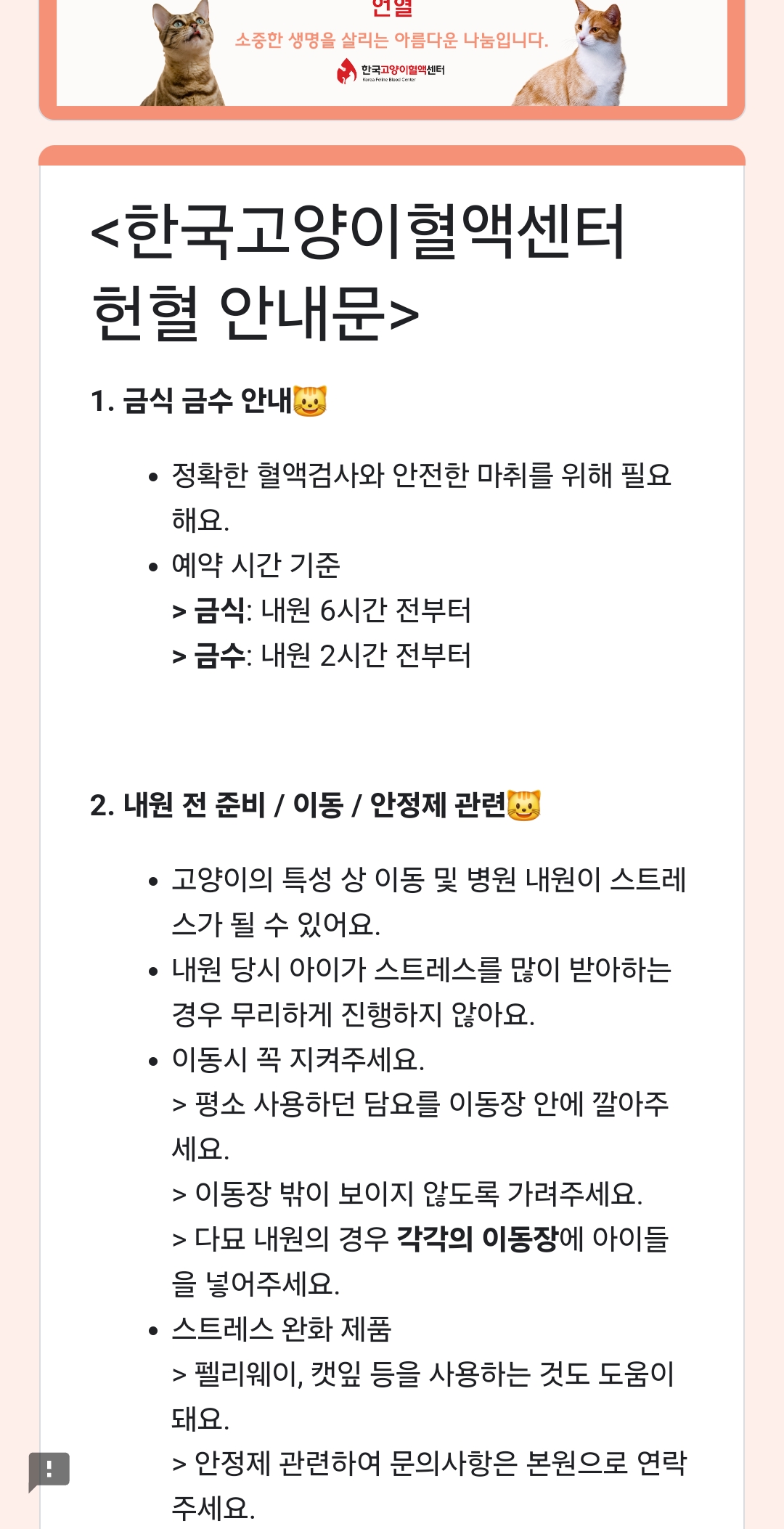 생명도 살리고 건강상태도 미리미리 확인 할 수 있는 고앵이들 헌혈 하러 가는 건 어떤가요?