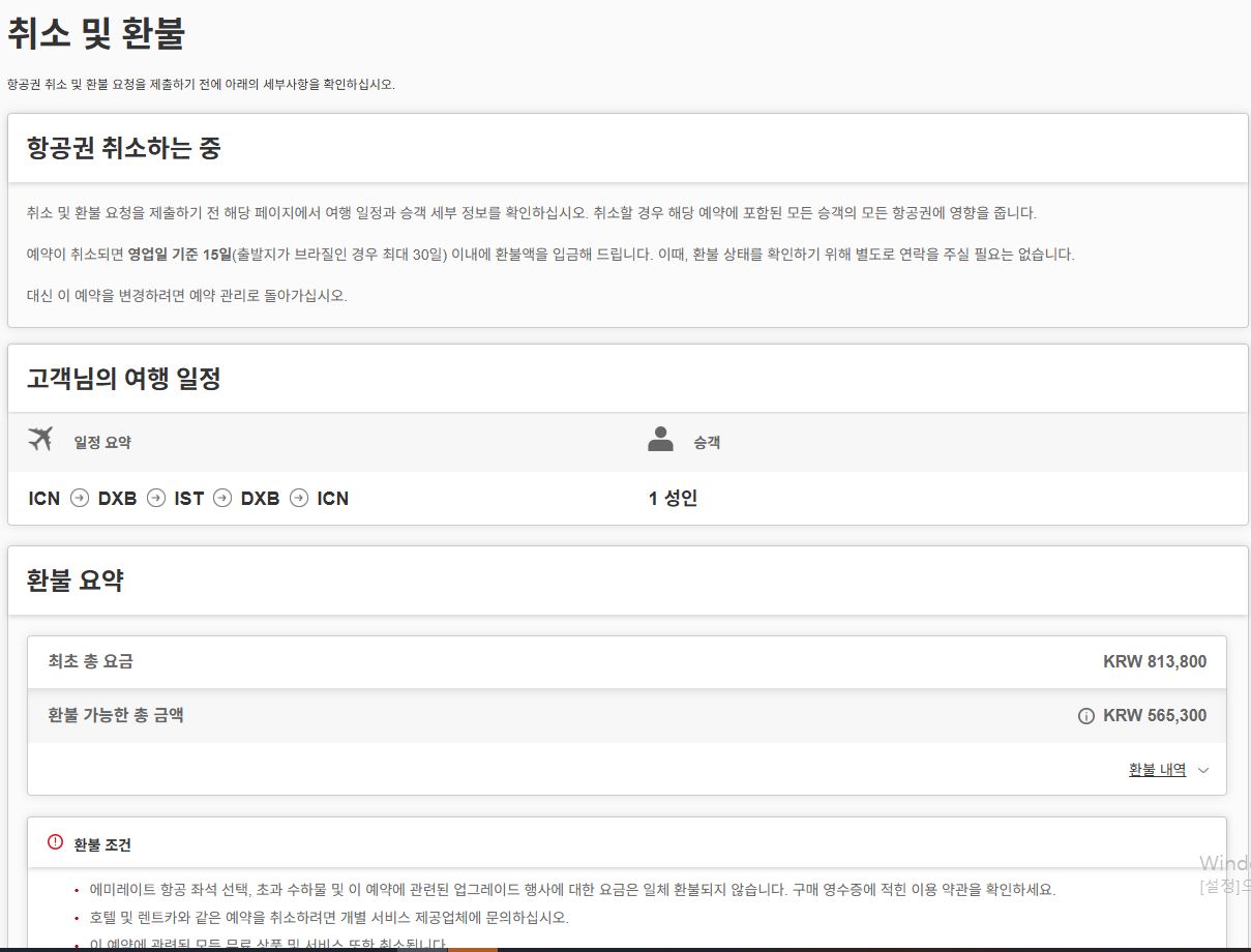 에미레이트 항공 항공권 취소 하는 방법