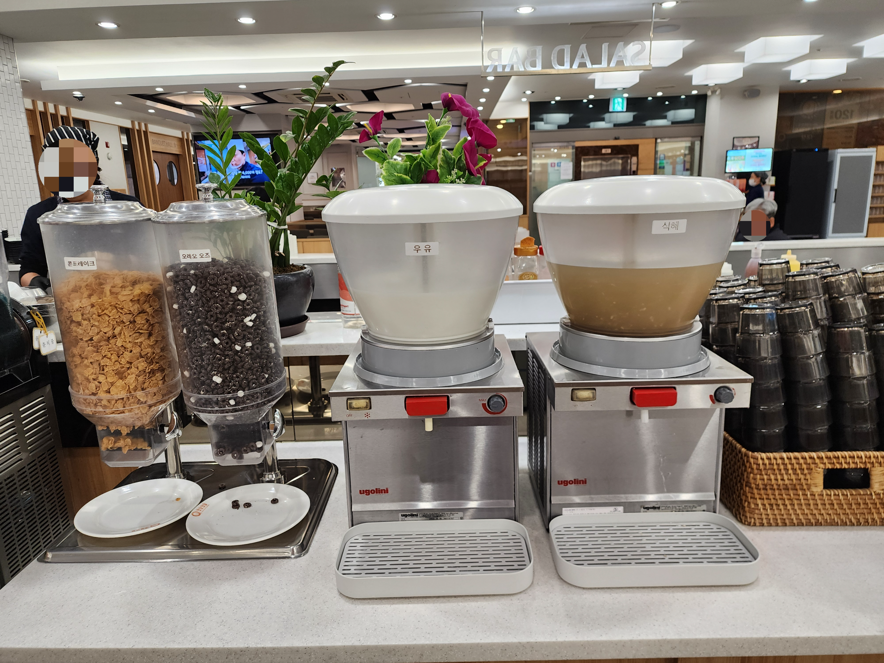 음료 코너로 가서 컵에 얼음을 받는다