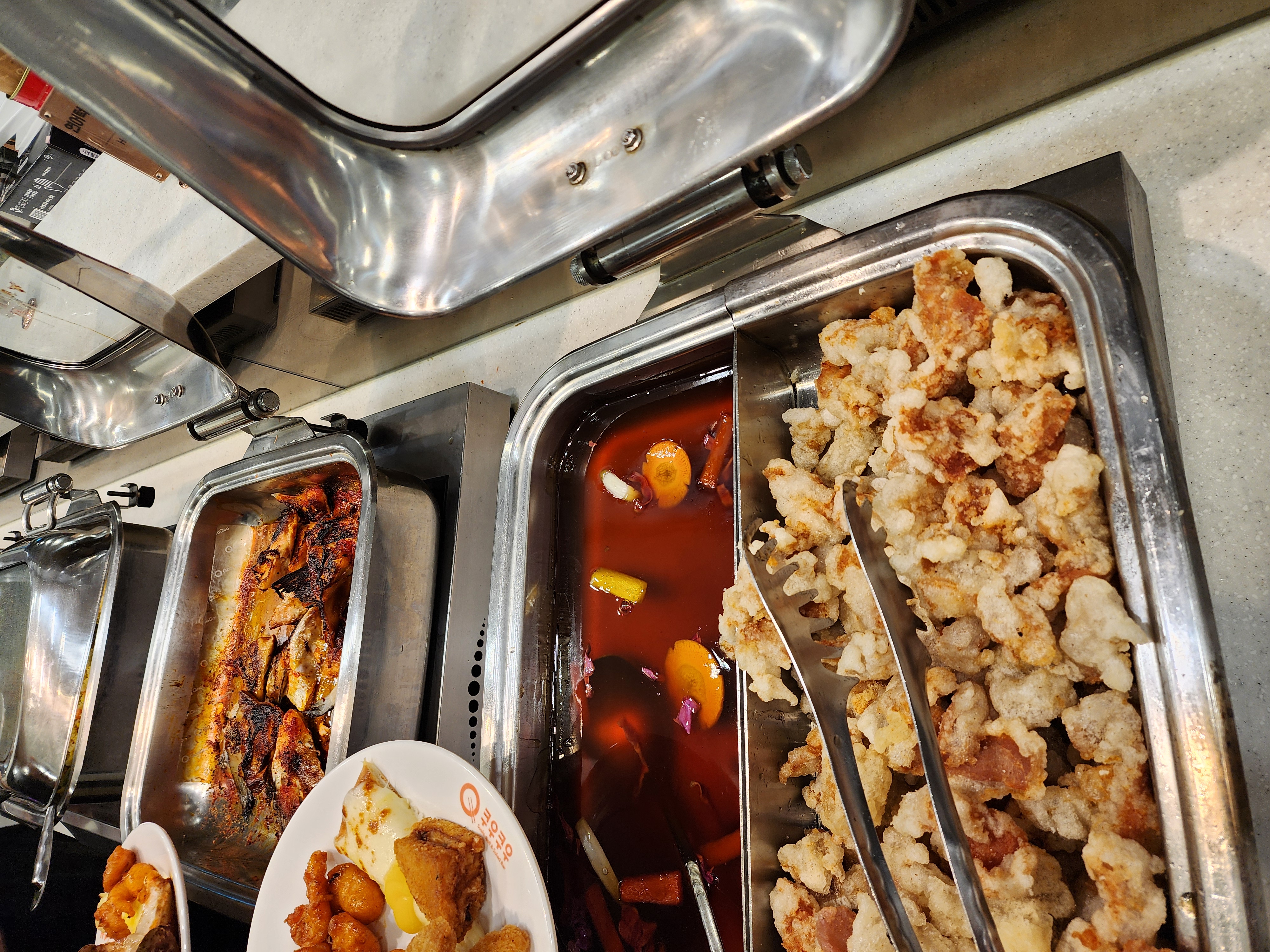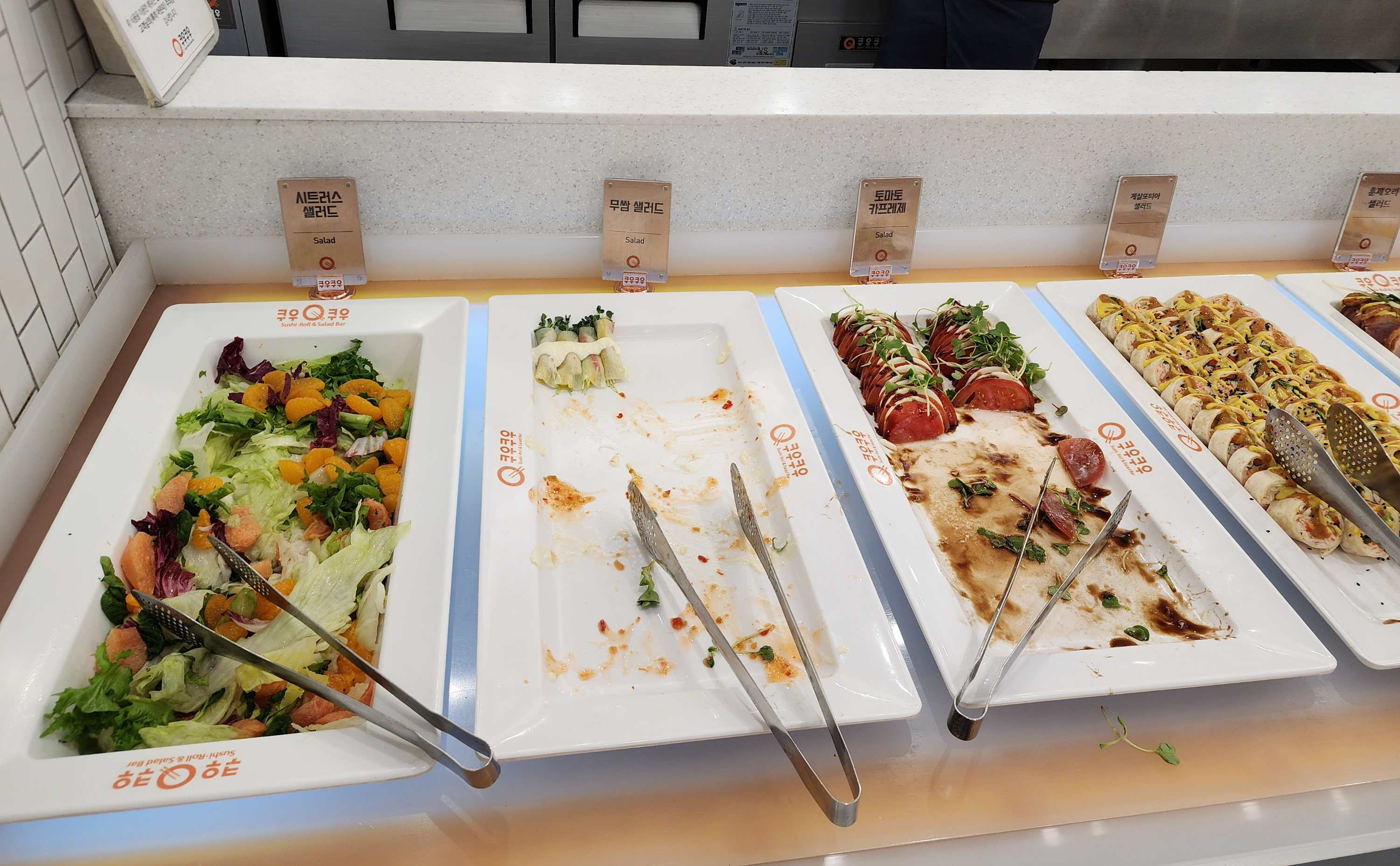 샐러드코너에서 시트러스샐러드 문어샐러드 치킨샐러드 한 점씩 다 가져와 먹었는데 개인적으로 시트러스샐러드가 제일 맛있었습니다