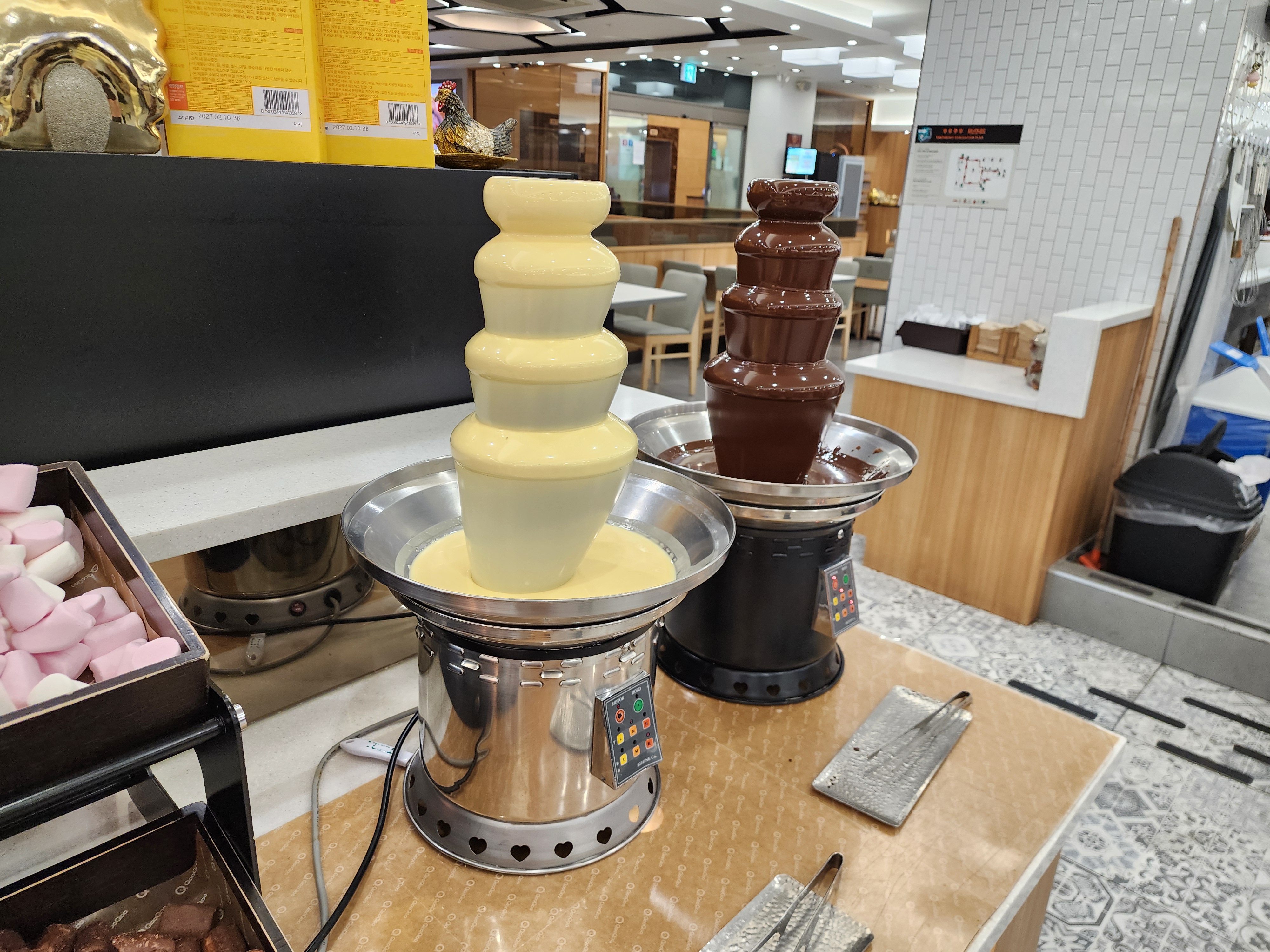 젤라또 아이스크림은 초코 딸기 요거트 녹차 밀크티 이렇게 5가지였고 전체적으로 맛있어요 요거트 아이스크림에 초코분수 초코 부으면 요아정? ㅎㅎ