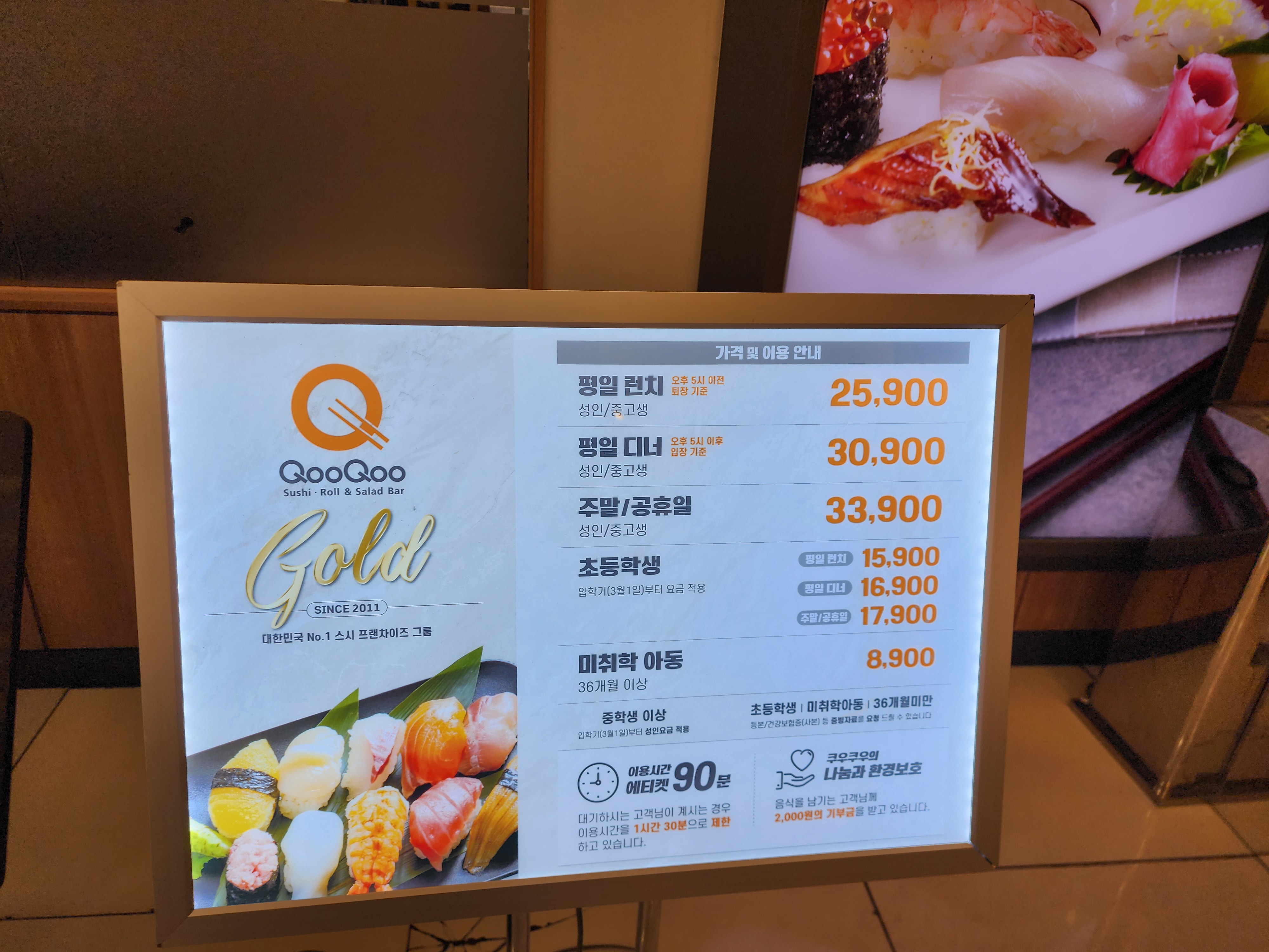 쿠우쿠우 골드 매장들 중에서도 평판이 어느 정도 좋아 선택하게 되었고 평일 런치에 방문하였습니다.
