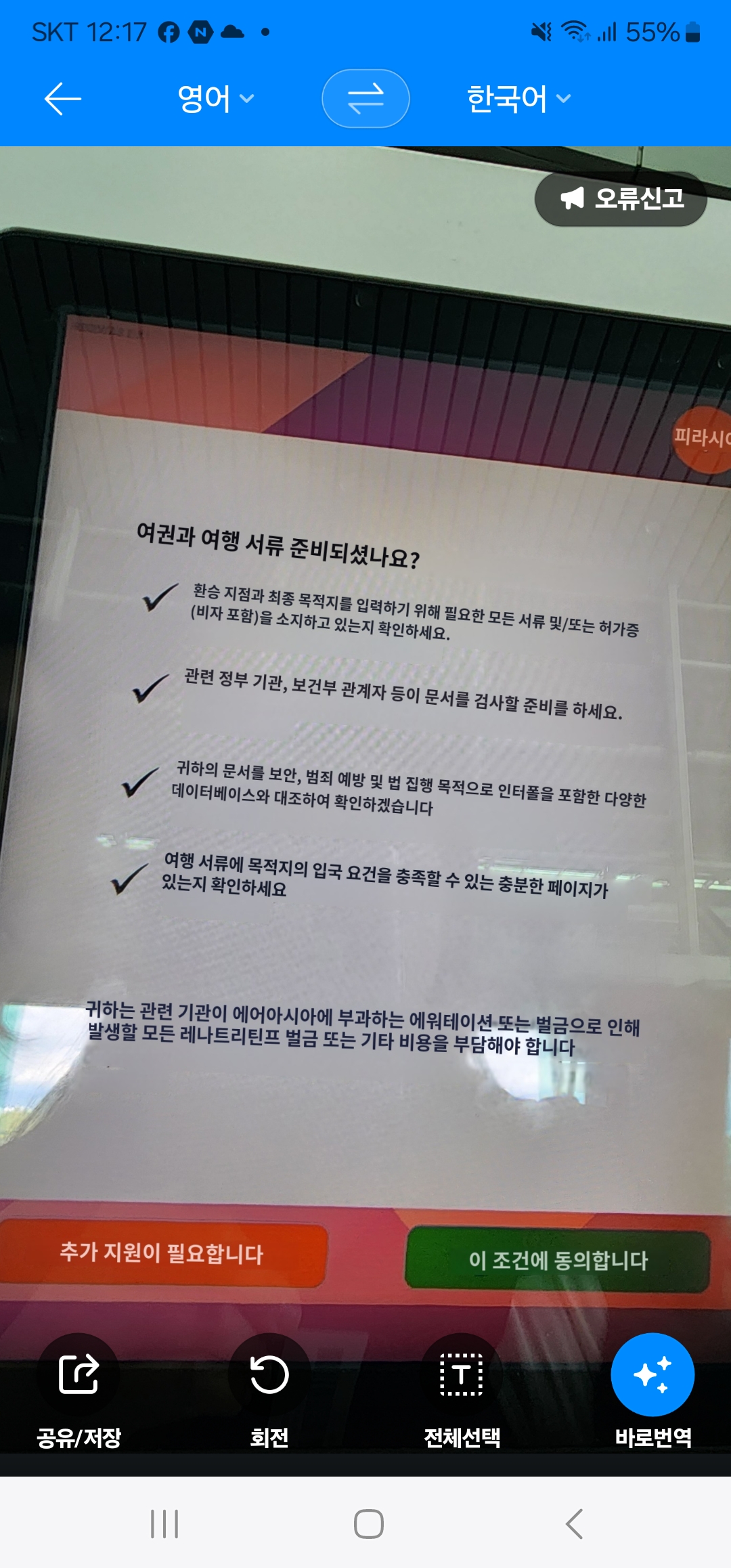 그리고 무슨 uv램프 같은 거 든 사람들이 여권을 또 한 번 확인합니다 위조 여권인지 확인하는 것 같았어요