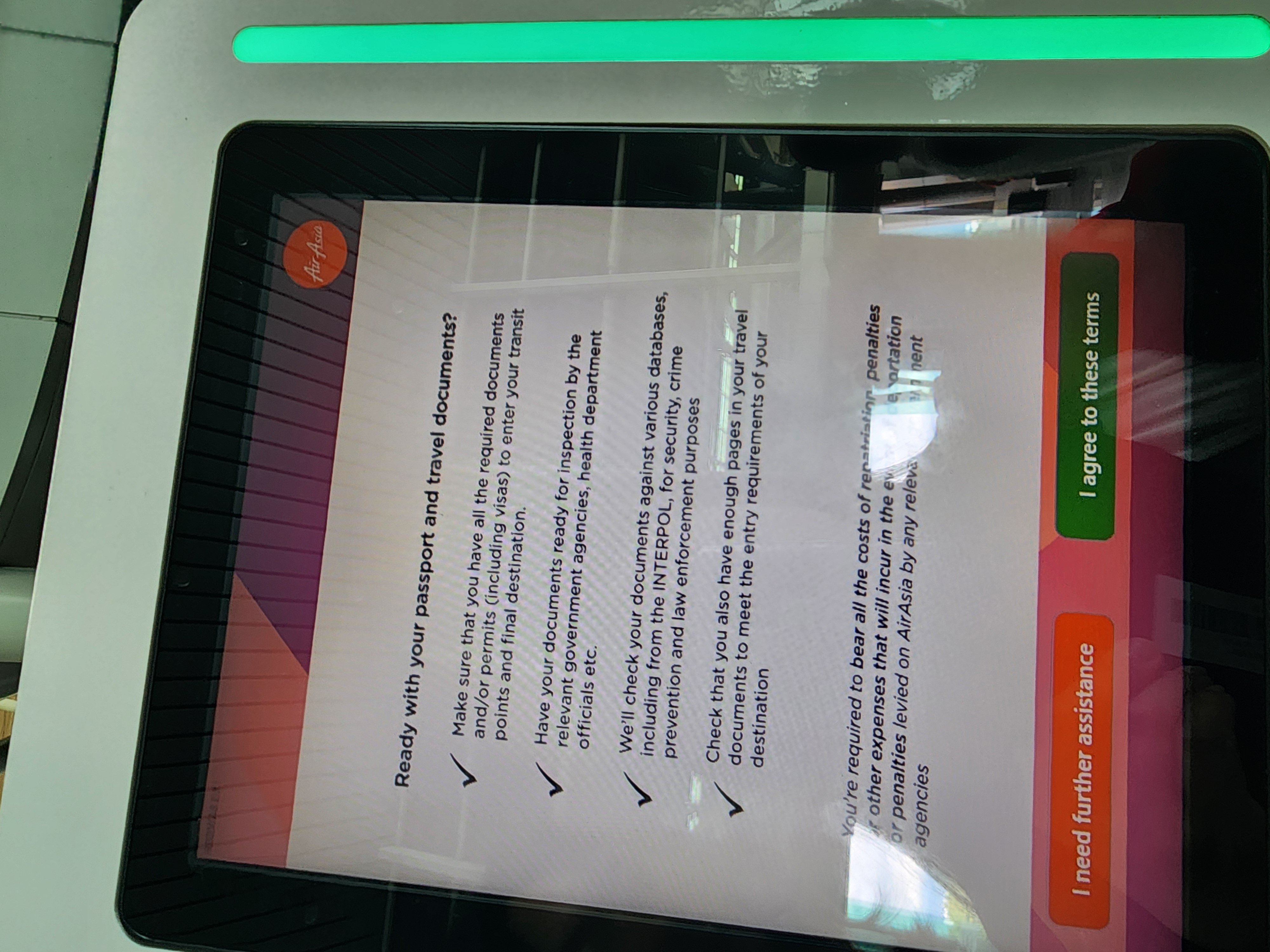 그리고 무슨 uv램프 같은 거 든 사람들이 여권을 또 한 번 확인합니다 위조 여권인지 확인하는 것 같았어요