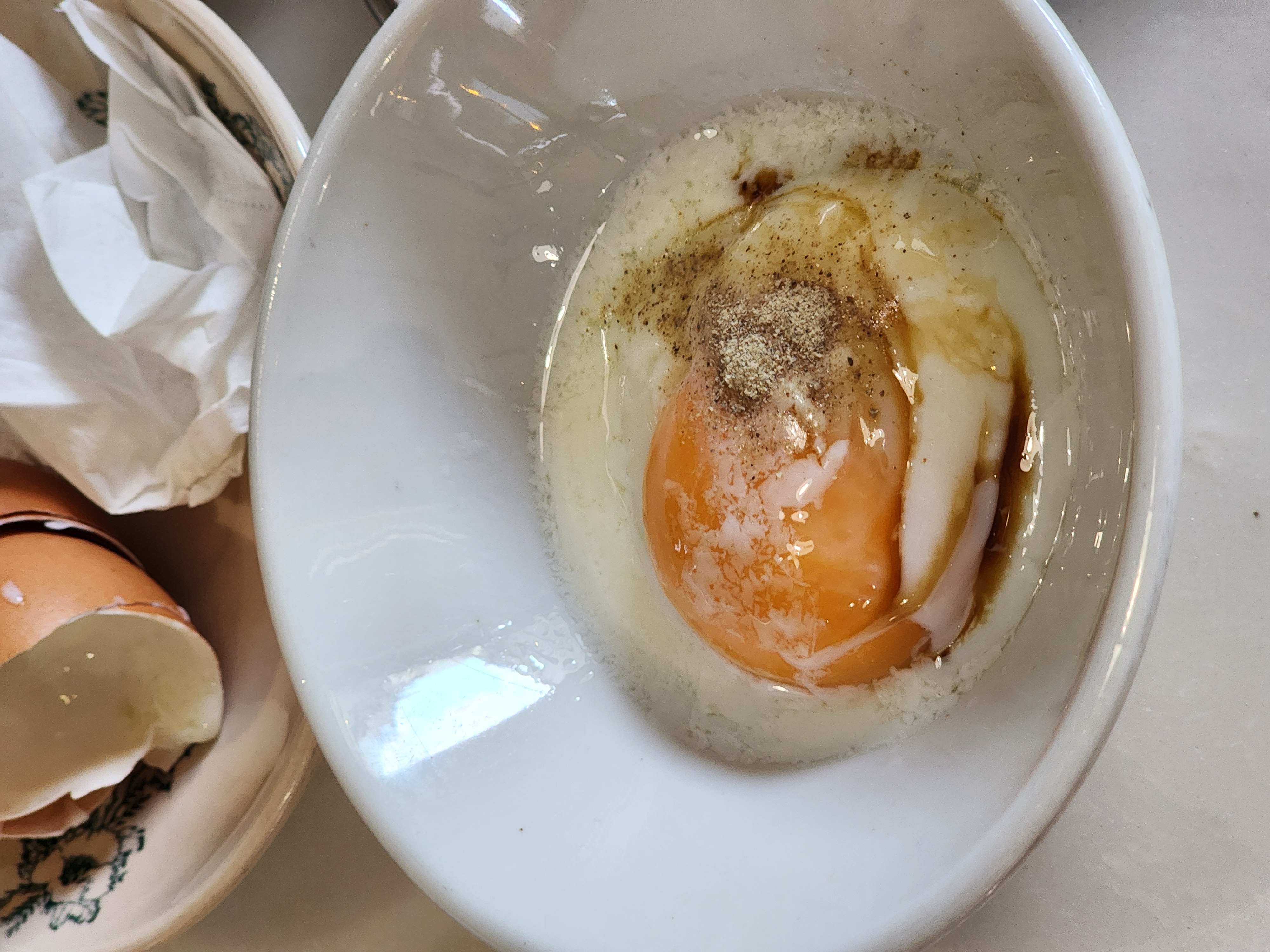 소프트보일드 에그(Soft-boiled Egg): 간장과 후추를 곁들여 먹는 반숙 계란