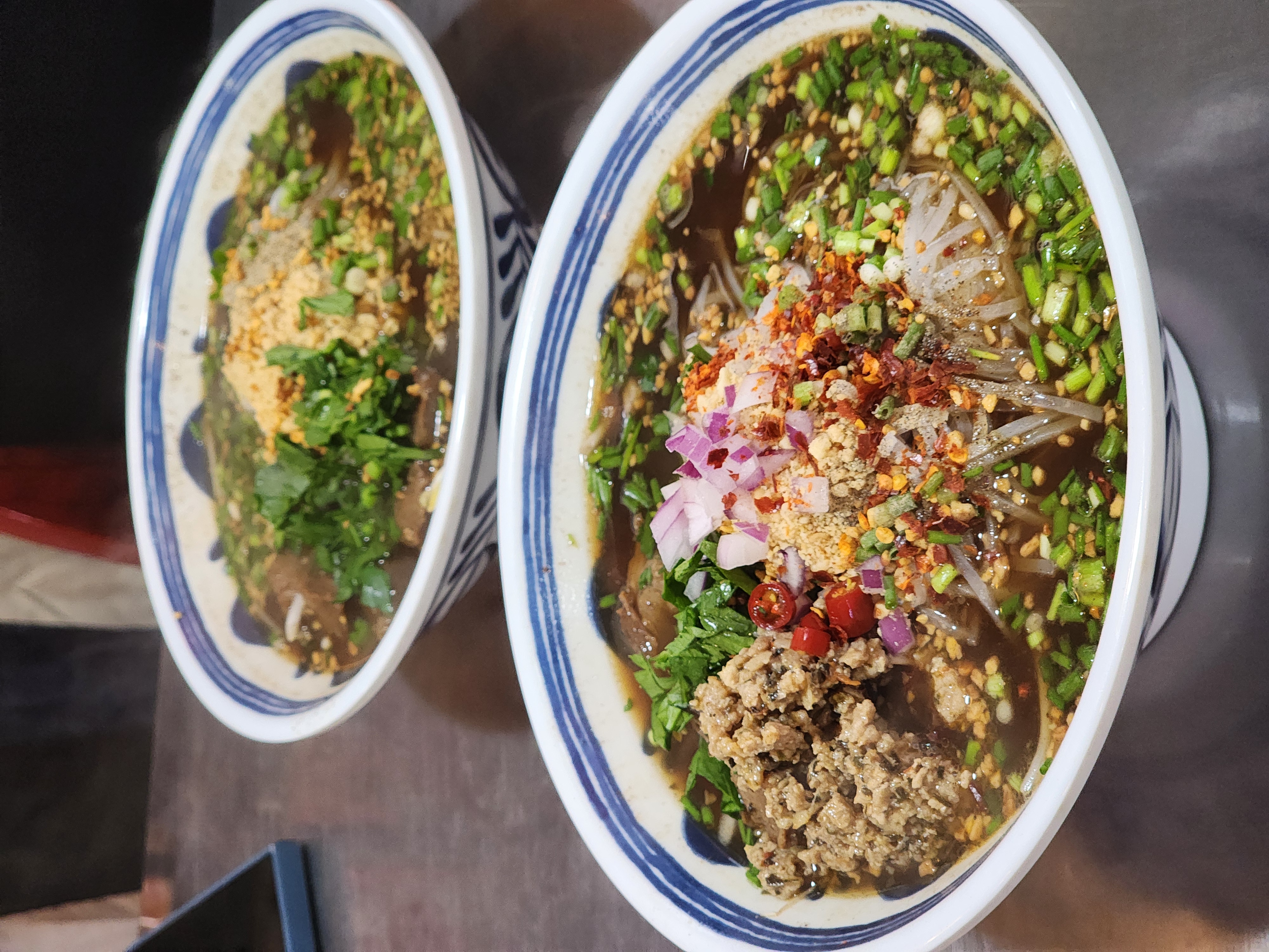 좀 더 진한 맛이라고 할까요... 향신료 향이 베트남쌀국수랑은 다른 느낌으로 와요