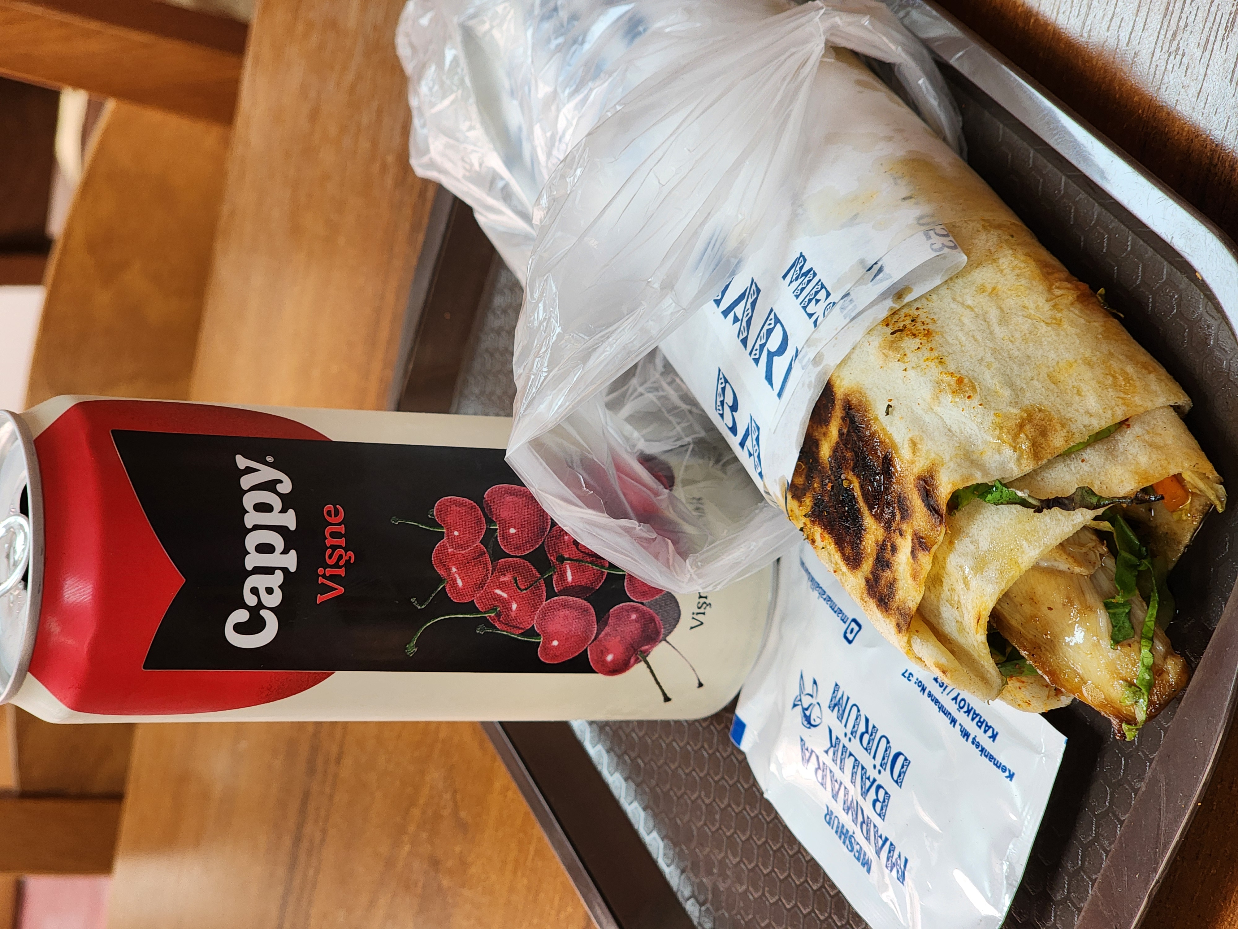 고등어케밥 210(약7200원)리라 체리주스가 50(약1700원)리라인가 그랬어요
