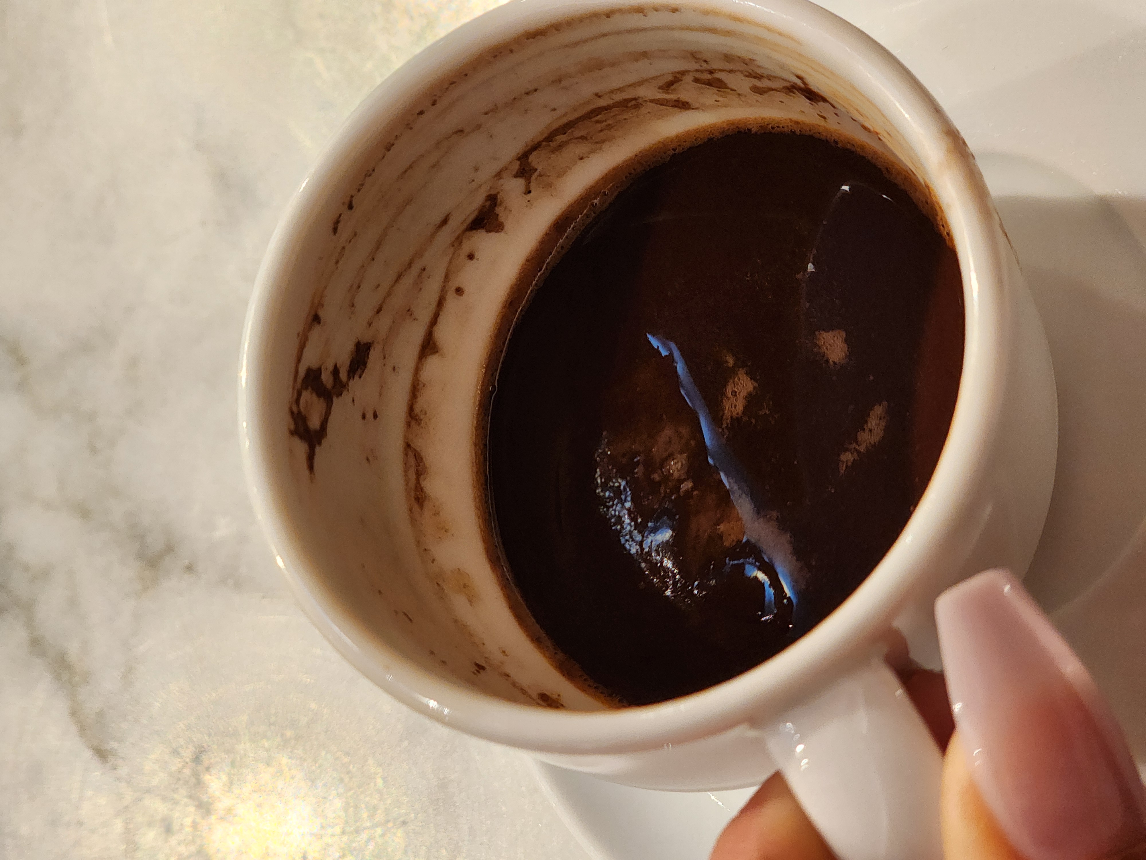 터키시 커피는 가루를 그대로 줘서 가라앉을 때까지 기다렸다가 가라앉으면 위에 커피만 마셔주는 거예요